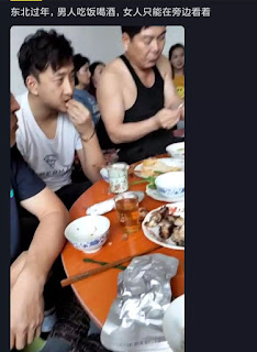 举个例子。抖音上有人拍照,抱怨说:男人吃饭女人只能靠边站。以后不会再回来过年。